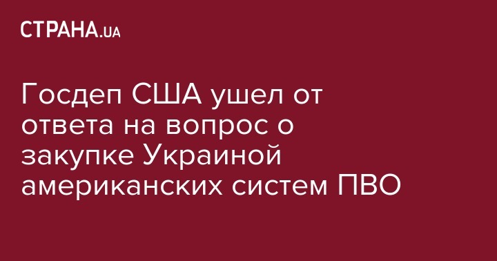 Во внешнеполитическом ведомстве США - Госдепе отказались комментировать заявления посла Украины в США Валерия Чалого о возможной закупке американских систем ПВО.