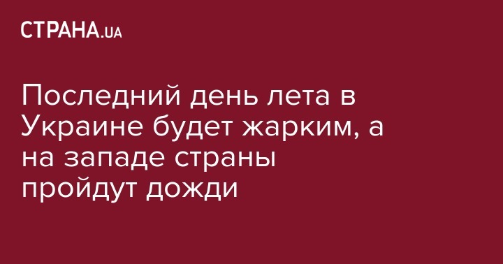 Последний день лета в Украине будет жарким, а на западе страны пройдут дожди