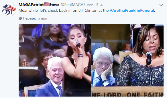 На похоронах Ареты Франклин Клинтон засмотрелся на фигуру Арианы Гранде