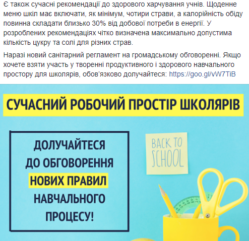По словам Супрун, разработан новый "Санитарный регламент для учреждений общего среднего образования". В школах сокращается длительность выполнения домашних заданий: не более одного часа в 3-9 классах и 1,5 часа в 10-12 классах. А для первоклассников и учеников второго класса домашние задания вообще не рекомендуются.
