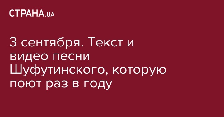 Сегодня, 3 сентября, музыкальный хит-парад дня опять возглавит песня "Третье сентября", которую шансонье Михаил Шуфутинский впервые исполнил 25 лет назад - в 1993 году. Об этой песне начинают вспоминать уже в конце августа, а в указанную дату соцсети взрываются шутками и мемами, связанными с этим музыкальным произведением.