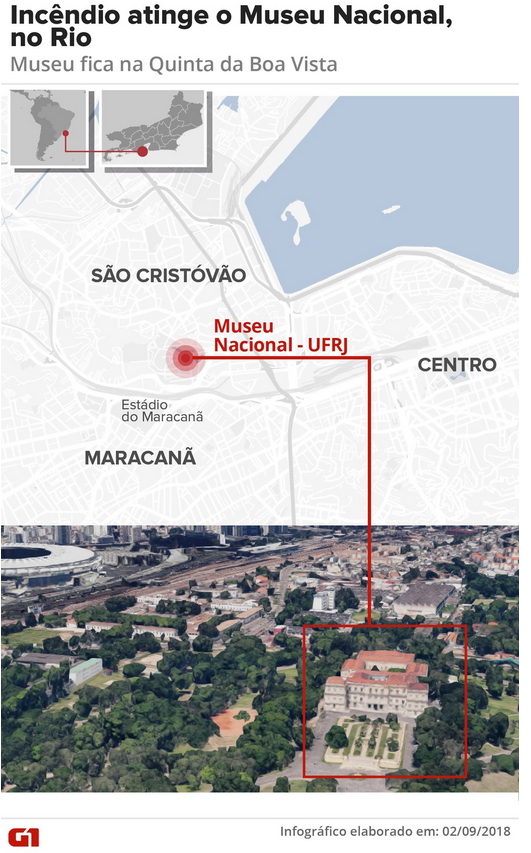 Национальный музей, расположенный в северной части Рио-де-Жанейро в парке Кинта-да-Боа-Виста, занимает площадь более 20 тыс. кв. метров. Его коллекция насчитывает до 20 000 000 экспонатов. Речь идет об археологических артефактах, египетских и южноамериканских мумиях и древностях, предметах быта и минералах. По предварительной информации, все это утеряно в результате пожара.