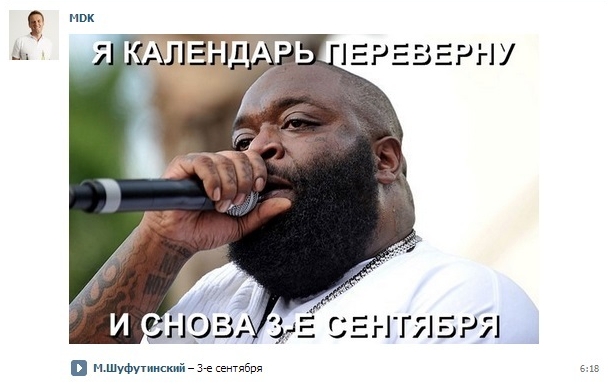 В 2013-м мем получил широкое распространение, и с тех пор каждое 3 сентября и накануне активно начинают появляться картинки, видео, коубы, шутки о дате, воспетой Шуфутинским.