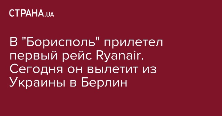 Сегодня, 3 сентября, в столичном аэропорту "Борисполь" приземлился самолет крупнейшего ирландского лоукост-авиаперевозчика Европы компании Ryanair, которая выполнила первый рейс в Украину из Берлина.