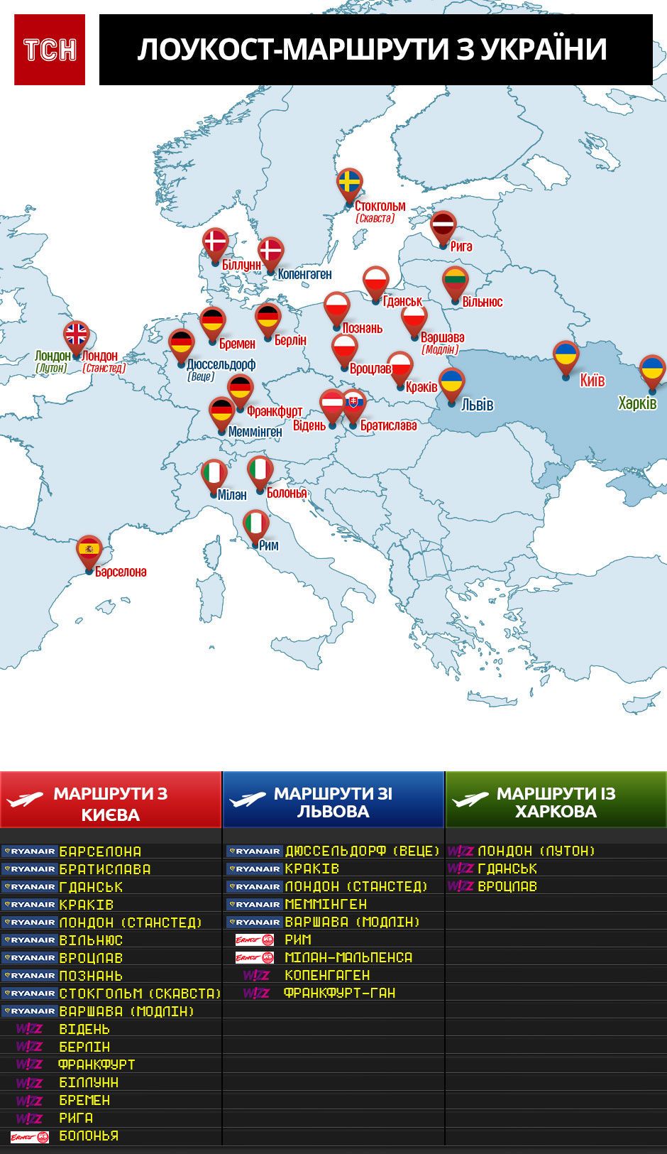 Маршруты лоукостеров из Украины Инфографика: tsn.ua