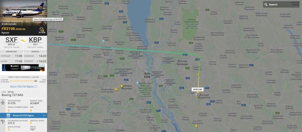 Прилет рейса Ryanair в Киев Фото: flightradar24