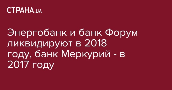 Энергобанк и банк Форум ликвидируют в 2018 году, банк Меркурий - в 2017 году