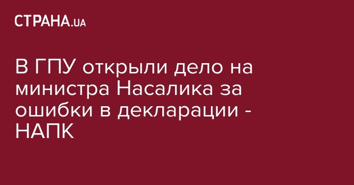 В ГПУ открыли дело на министра Насалика за ошибки в декларации - НАПК