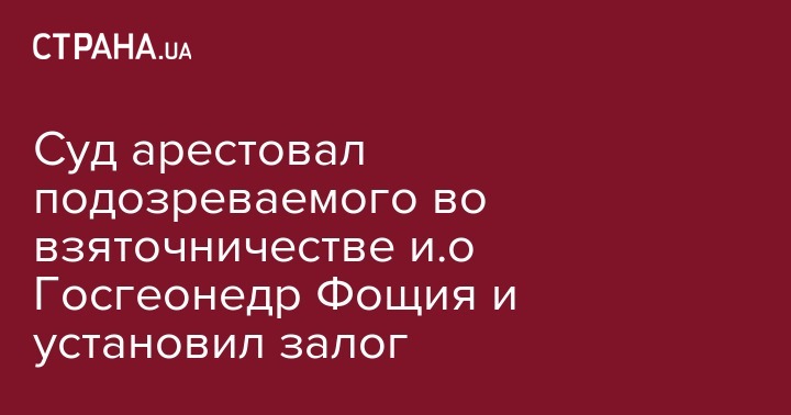 Шевченковский районный суд Киева избрал для временно исполняющего обязанности председателя Государственной службы геологии и недр Николая Фощия, подозреваемого в получении 3 тыс. долларов взятки, меру пресечения в виде содержания под стражей и установил альтернативный залог в размере 105 720 гривен. Об этом Украинским Новостям сообщила пресс-служба Генеральной прокуратуры.