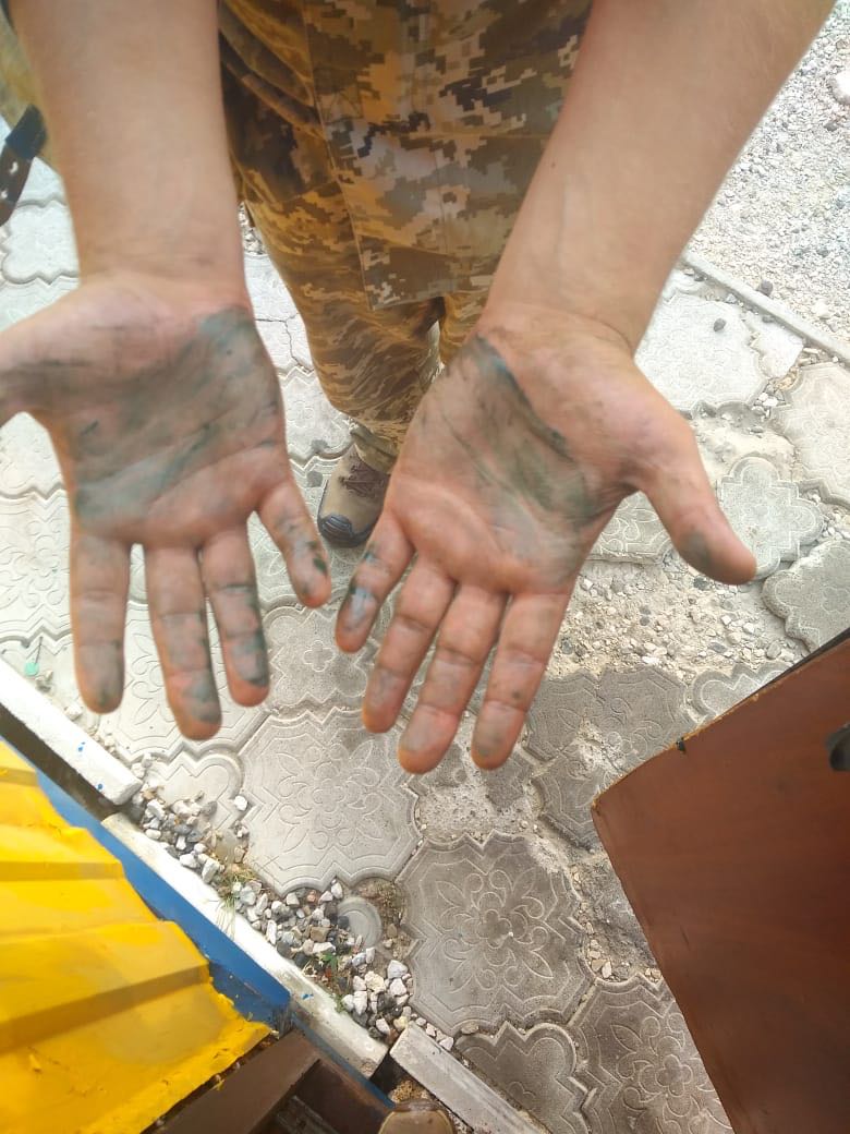 На фотографиях изображены предметы, которые покрылись налетом. Также обнародованы фото с коричневыми пятнами на земле.