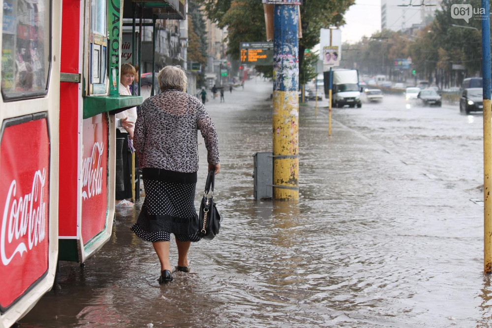 Мощный ливень, который прошел в Запорожье в понедельник, утром 10 сентября, превратил в реки улицы областного центра, сообщает сайт города.