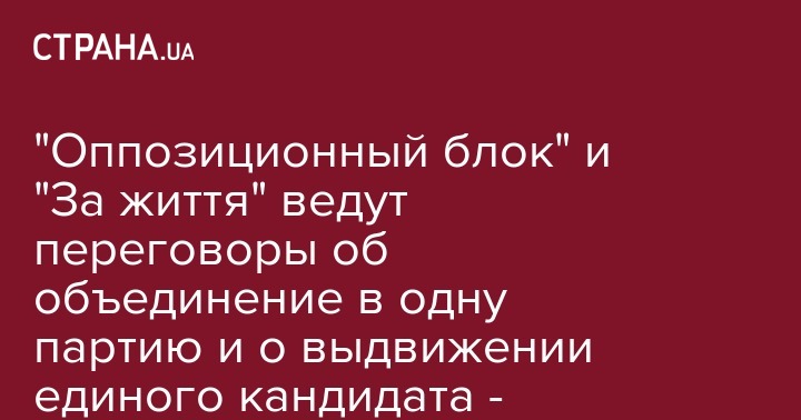 "Оппозиционный блок" и "За життя" ведут переговоры об объединение в одну партию и о выдвижении единого кандидата - источник