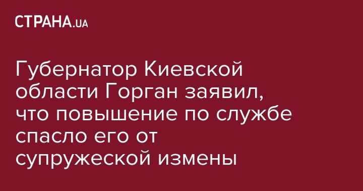 Губернатор Киевской области Горган заявил, что повышение по службе спасло его от супружеской измены