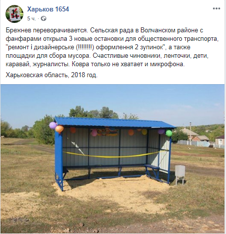 Так, речь идет о том, что сельсовет в Волчанском районе устроил торжественное открытие трех новых, а также "ремонта и дизайнерского оформления" двух старых остановок общественного транспорта. Кроме того, чиновники с фанфарами открыли площадку для сбора мусора.
