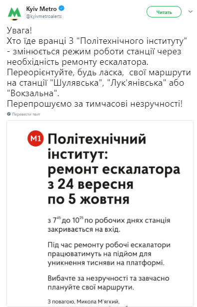 "Вимнию тех, кто едет утром с "Политехнического института": меняется режим работы станции из-за необходимости ремонта эскалатора", - говорится в сообщении.