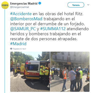 В Мадриде во время ремонта в отеле Ritz рухнули строительные леса. Один человек погиб, 11 - ранены