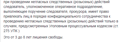 По словам юриста, попытки установить конфиденциальное сотрудничество с журналистами противоречат сразу трем документам: УПК Украины, Закону Украины "Об оперативно-розыскной деятельности" и Инструкции об организации проведения негласных следственных (розыскных) действий и использования их результатов в уголовном производстве, утвержденной приказом Генеральной прокуратуры Украины.