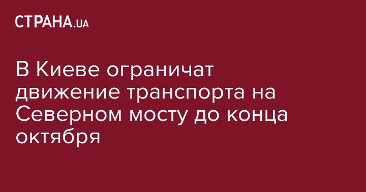 В Киеве до 28 октября вновь частично ограничат движение транспорта на Северном мосту в направлении Троещины. Об этом сообщает пресс-служба КГГА со ссылкой на сообщение Киевавтодора в среду, 19 сентября.