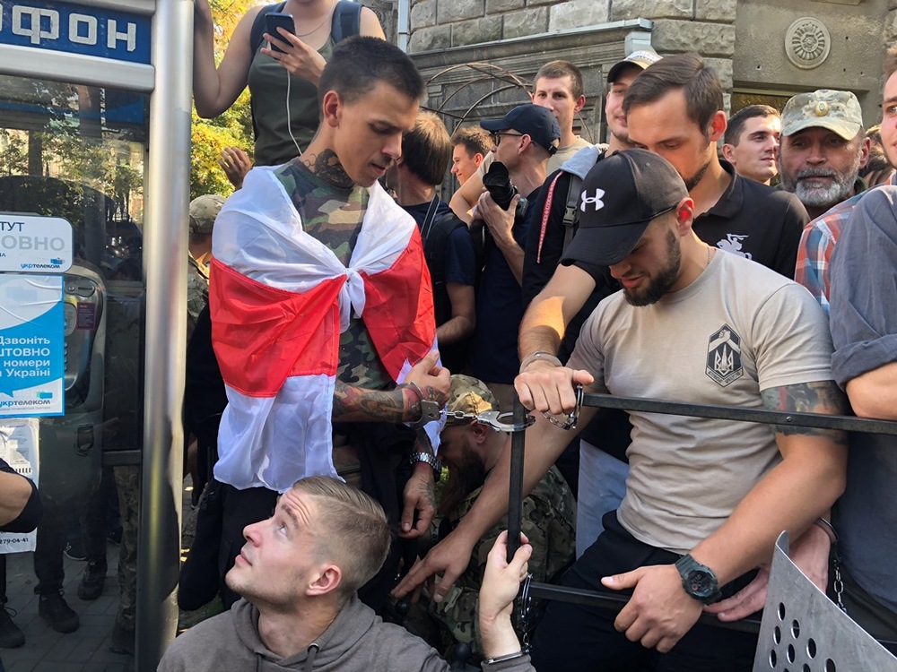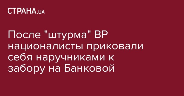 После "штурма" ВР националисты приковали себя наручниками к забору на Банковой
