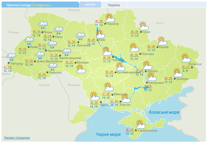 В субботу, 22 сентября, в Украине будет сухая и солнечная погода, но местами пройдут дожди. Об этом сообщает пресс-служба Укргидрометцентра.