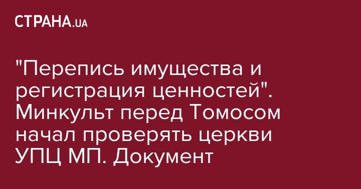 "Перепись имущества и регистрация ценностей". Минкульт перед Томосом начал проверять церкви УПЦ МП. Документ