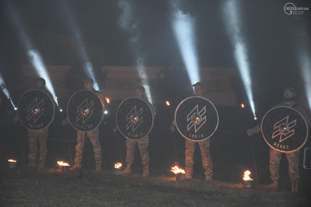 Факелы и именные щиты. "Азов" под Мариуполем помянул погибших побратимах языческими ритуалами