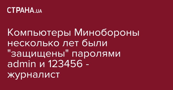 На протяжении почти пяти лет военных действий на Донбассе, ряд компьютеров, серверов и шлюзов Минобороны были защищены паролями типа admin и 123456, а обращения сисдамина, который это обнаружил, все ведомства игнорировали. Об этом в материале "Оборонный скандал государственного масштаба" сообщает журналист Александр Дубинский на своем сайте. По его данным, речь идет об автоматизированной системе управления войсками "Дніпро", доступ к которой все это время "мог получить любой школьник".