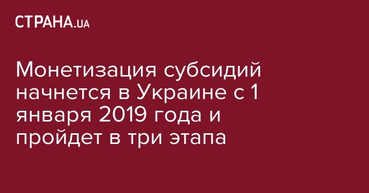 Монетизация субсидий начнется в Украине с 1 января 2019 года и пройдет в три этапа