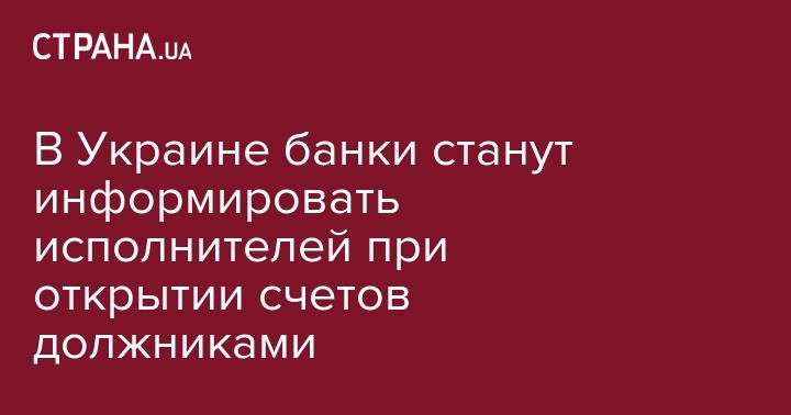 В Украине банки станут информировать исполнителей при открытии счетов должниками