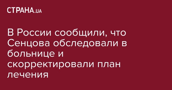 По информации УФСИН, Олега Сенцова отправили в Лабытнангскую городскую больницу. Там он прошел плановое обследование и получил консультации врачей-специалистов. Также сообщается, что Сенцову скорректировали план лечения.