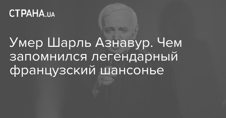 Умер легендарный французский шансонье Шарль Азнавур. Ему было 94 года. В апреле этого года певец уже был госпитализирован перед концертом в Санкт-Петербурге. Ему резко стало плохо и выступление перенесли на 2019-й год. В последнее время певец жил с семьей в Швейцарии.