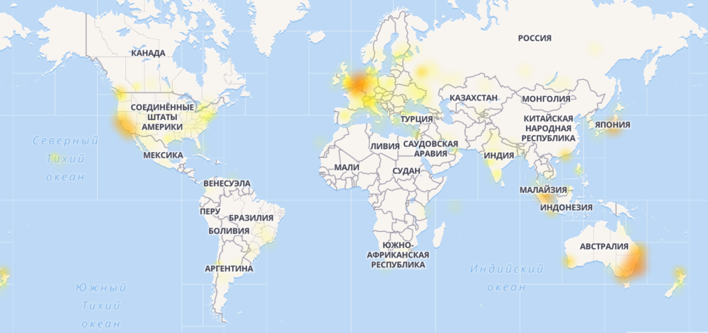 Судя по карте сбоев, проблемы ощутили пользователи в Европе, США, Австралии, Индонезии, Японии и России. Самая сложная ситуация в Великобритании и Нидерландах, в Украине также наблюдается сбой.