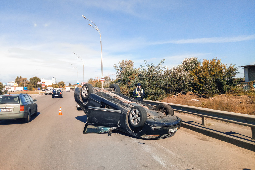 В Киеве пьяный за рулем Mercedes влетел в два автомобиля, а потом перевернулся кверху дном