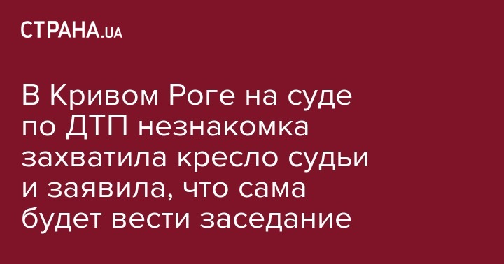 В Октябрьском районном суде города Кривого Рога 18 сентября отложили заседание суда, на котором должны были рассматривать гражданский иск о взыскании материального и морального вреда в результате ДТП. В зал вошла незнакомка, заняла место судьи и не покинула это место, пока не перенесли заседание. Об этом пишет "Закон и Бизнес".