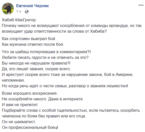 Он профессиональный боец!", - пишет украинский бизнесмен Евгений Черняк.