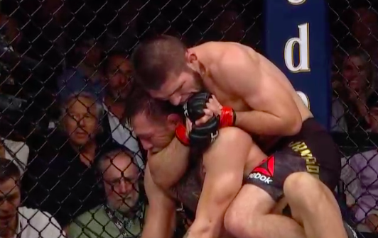 После победного удушающего приема, Хабиб выскочил за пределы октагона и пошел драться с каким-то оскорбившим его тренером. В свою очередь в октагоне Конор полез драться с другом Нурмагомедова Зубайрой Тухуговым.
