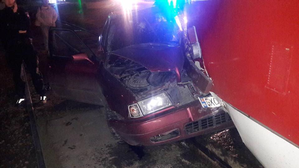 В Харькове евробляхер "впечатался" в трамвай. Трое парней попали в больницу