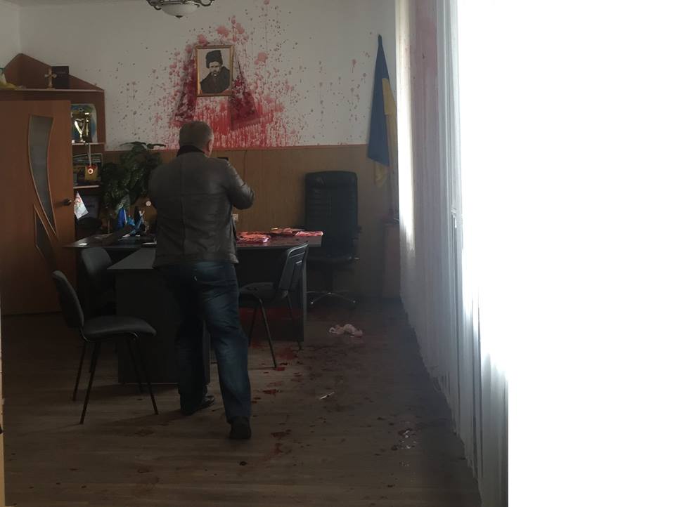 Мэра города Гнивань Винницкой области Владимира Кулешова активисты облили кровью в рабочем кабинете, передает "Вінниця.info".