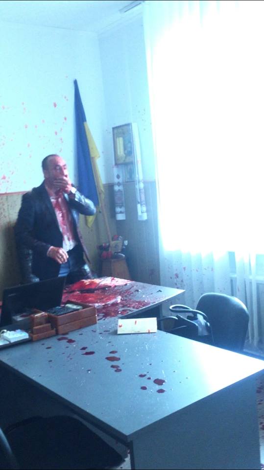 Мэра города под Винницей облили кровью из-за подозрений в финансировании Керченского моста. Фото
