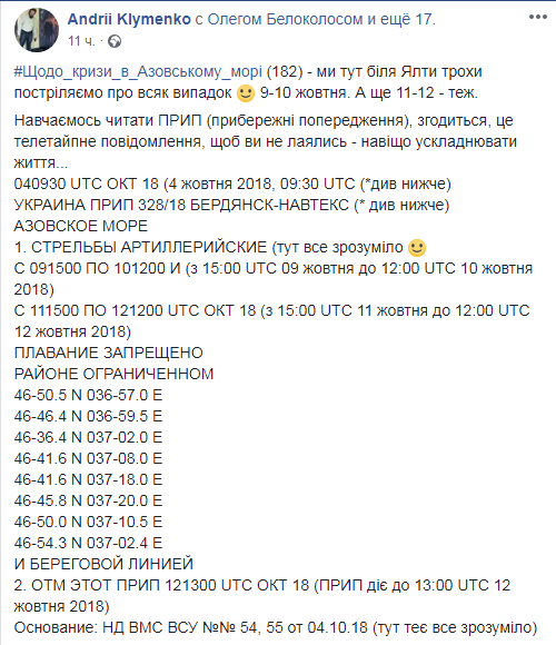 Скриншот: Facebook/ Andrii Klymenko