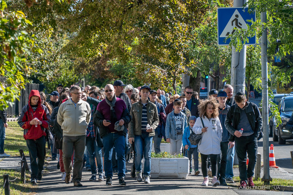 Участники Марша прошли пешком путь от места, где сегодня расположен кинотеатр "Киевская Русь" до Бабьего Яра, повторив маршрут тех, кто 29 и 30 сентября 1941 года прошел его в последний раз.