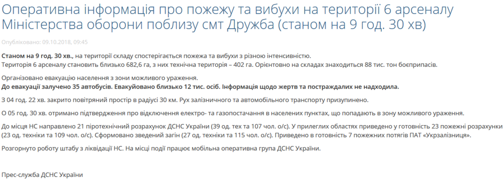 При этом ГосЧС спокойно опубликовало пресс-релиз, в котором заявило, что под Ичней хранится 88 тысяч тонн боеприпасов.