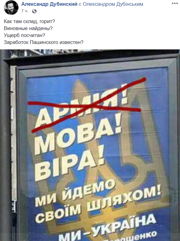 "Вся страна обвешана бордами Порошенко о сильной армии, являющейся залогом мира, – пишет у себя на ФБ политолог Дмитрий Корнейчук. – И одновременно происходит очередное резонансное ЧП на артиллерийских складах – взрывы арсенала в Ичне (Черниговская область). А ведь еще в сентябре 2017-го мы наблюдали, как взорвались склады боеприпасов в Калиновке (Винницкая область). А весной 2017-го грохотали склады в Балаклее (Харьковская область). И что мы видим в итоге? С одной стороны, президент Порошенко пытается имитировать из себя великого военоначальника и защитника страны от Путина. И с этим тезисом вновь намерен обманывать избирателя. С другой – один за другим при президенте Порошенко уничтожаются склады боеприпасов, нужных для фронта. Тем самым – ослабляя оборону страны".