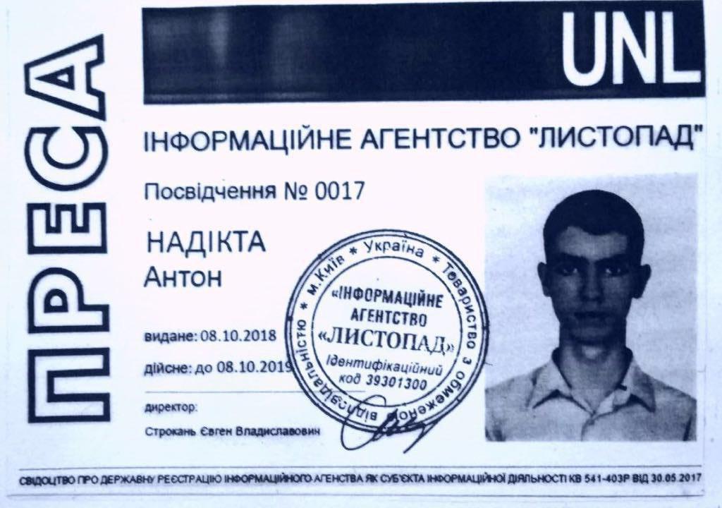 Интересно, что данные про удостоверение ИА "Листопад" отсутствуют в открытых источниках так как, вероятно, ксива липовая, что тянет еще и на ст.358 УК Украины - "Использование заведомо поддельного документа".