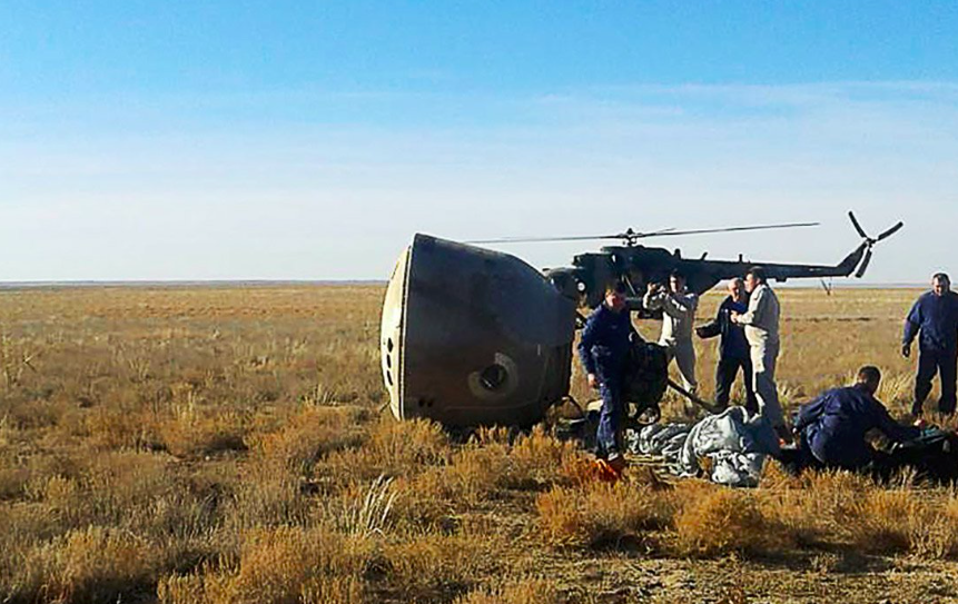 При посадке россиянин и американец испытали сильную перегрузку, но травм не получили. Медицинская помощь им не потребовалась. Менее чем через 15 минут после приземления до спускаемой капсулы "Союза" добрались спасатели.