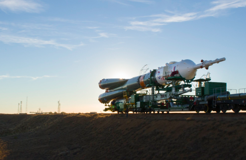 Ракета за несколько минут до запуска на космодроме Байконур. Фото: Роскосмос