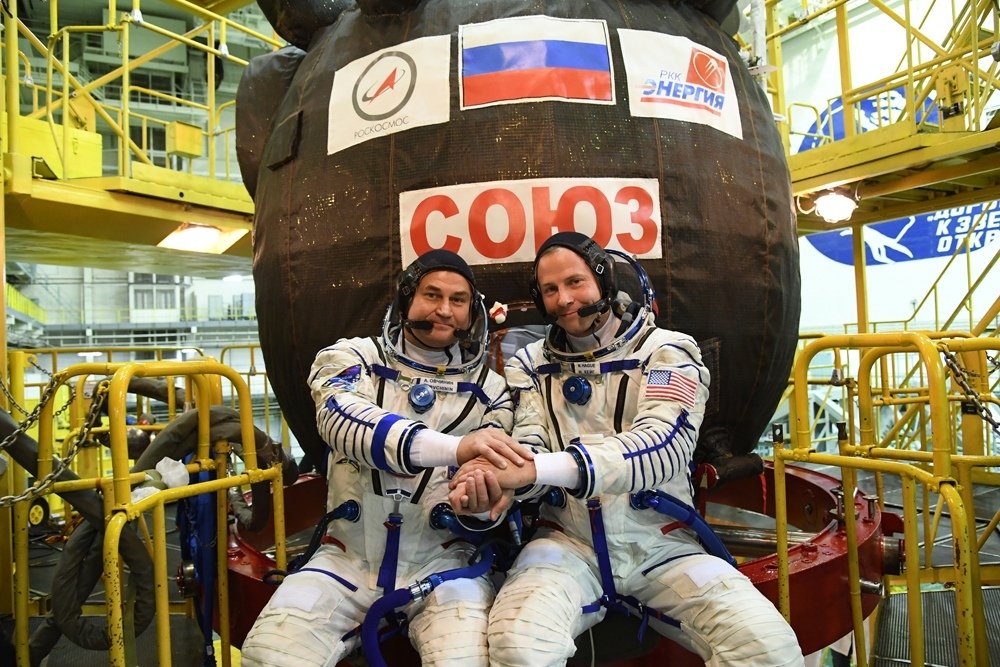 В составе экипажа были космонавт Роскосмоса Алексей Овчинин (на фото слева) и астронавт NASA Ник Хейг. Третье место на корабле занимал контейнер с грузом для Международной космической станции.
