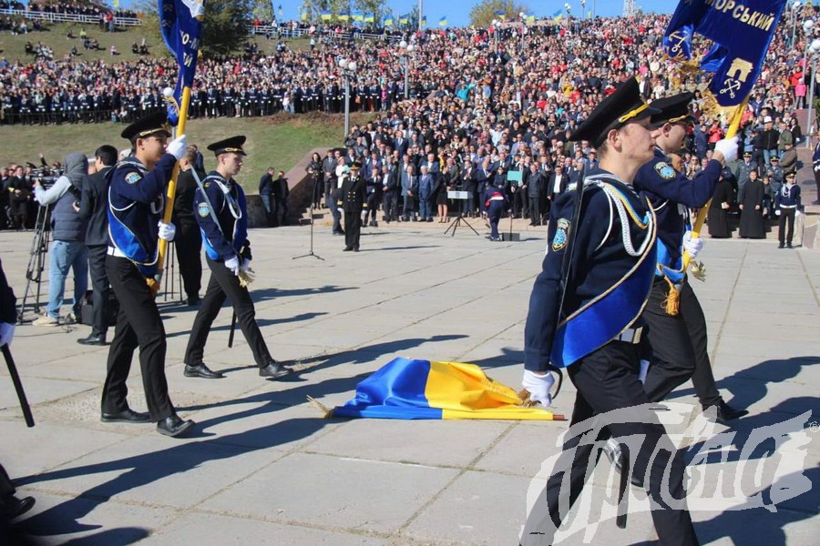 В Херсоне во время визита Порошенко упал государственный флаг. Фото