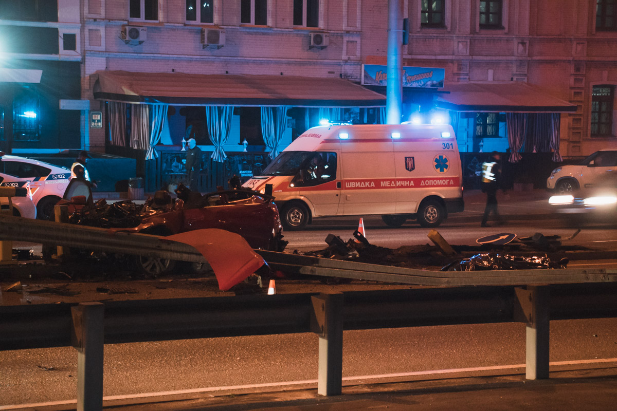 Ночью в Киеве Mercedes влетел в отбойник, двое погибших. Фото и видео