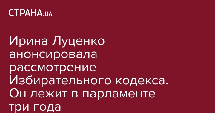 Ирина Луценко анонсировала рассмотрение Избирательного кодекса. Он лежит в парламенте три года